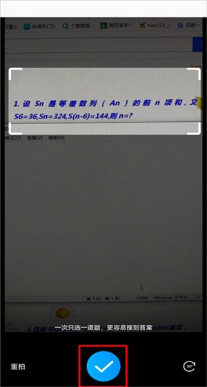 2、将手机切换至横屏模式,拍摄需要提问的问题,之后手动截取要问问题的画面,最后点击确定。