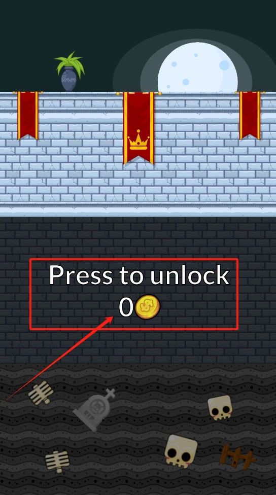 1、点红框Press to unlock解锁新内容,需要金币但现在是0,先攒钱吧。
