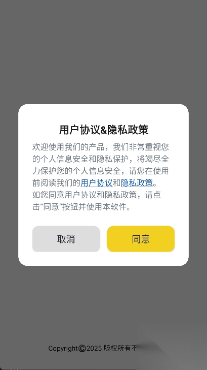 1. 下载并安装APP,点击同意,即可进入主页面;