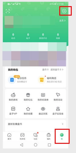 1. 开启4399游戏盒,在“我”里面点击设置。