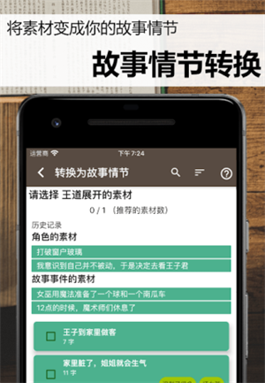 随着日积月累,素材慢慢变多,这些素材能够直接拼凑起来形成剧作,于是我们就来到了剧作本模块。使用剧作本时要选择内容篇幅,故事织机会根据篇幅不同而提供有针对性的描述引导。如果你是在素材本里选择「以素材制作故事情节」,就一步步根据引导去选择角色、情节、转折等等内容,完成后就来到了这部作品的故事情节页面。