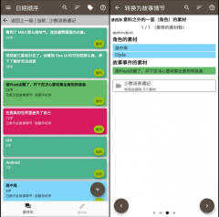 故事织机分为两个功能模块:素材本和剧作本。素材本顾名思义就是存放素材的地方,我们可以把偶尔迸发的灵感扔进这里,可以是角色、故事情节,或者是一场大战描述和结尾的升华,每一个素材都可以归属于一个文件夹,并配置不同颜色用以区分,比如角色用白色表示、关键情节用红色表示。