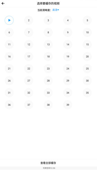 5、若要下载视频资源,可选中多个剧集后点击“缓存”。