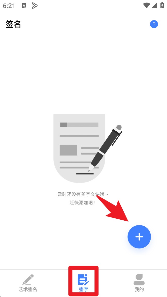 3. 转到“签字”页面,点击右下角的“+”号,即可添加新的签字内容,或者创建签名记录。