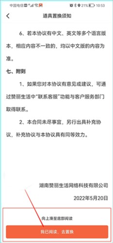 4、拉到页面底部,等待几秒钟,点击“我已阅读,去置换”。