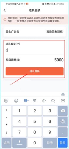 5、输入要置换的广告道具数量,点击“确认置换”。