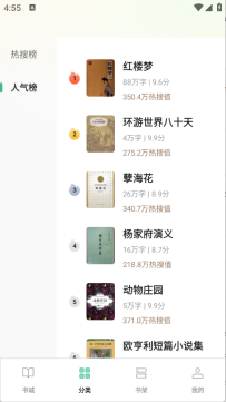 2. 进入首页,在“书城”和“分类”页面中,存在大量小说资源,涵盖言情、科幻、武侠等多种类型。