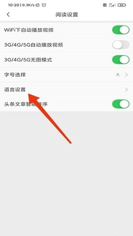 4.接着在阅读设置页,在倒数第二行有一个语言设置功能,点击打开