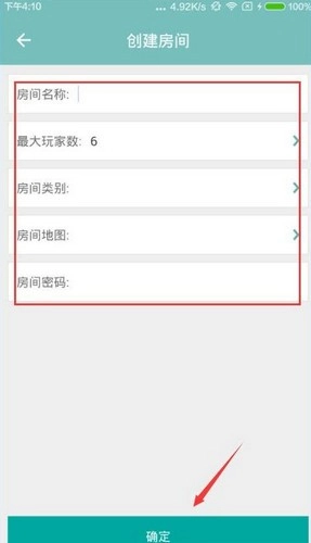 3、填写房间名称、最大玩家数、房间类别、房间地图以及房间密码,接着点击确认按钮,就能快速完成创建。