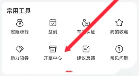 2、在个人中心界面,定位并点击"开票中心"功能模块。