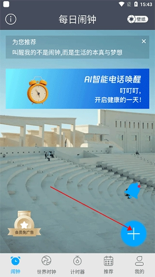 1、点击加号,新建一个闹钟