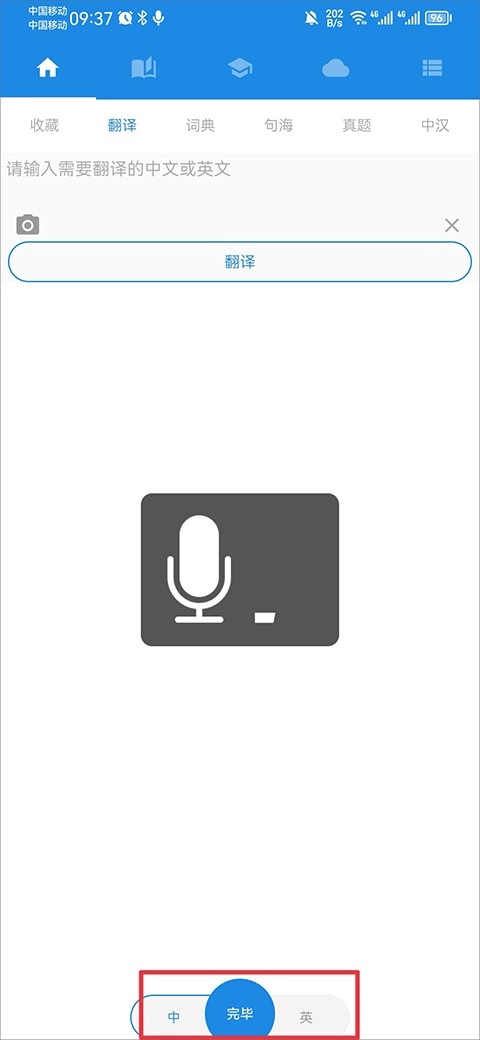 方式3:点击下方的话筒图标,接着说出需要翻译的中文或英文内容,待系统完成识别后,对应的翻译结果就会显示出来。