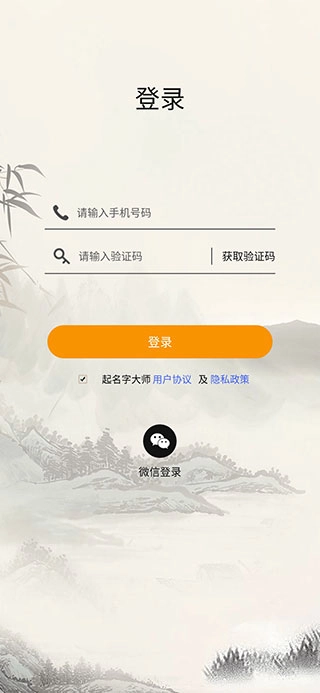 1、在本站安装起名字大师应用,打开后通过手机号+验证码的方式登录,或者选择微信登录即可使用: