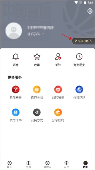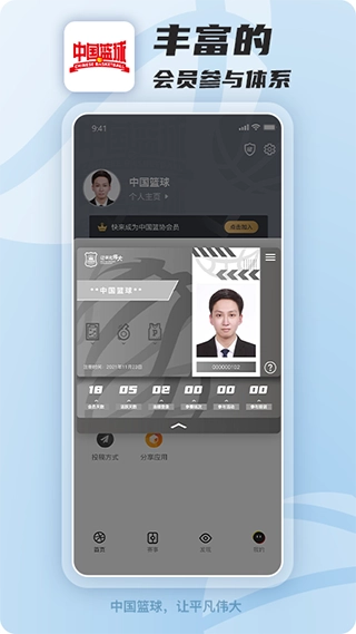 1、打开软件并登录账号后,切换至“我的”功能模块,点击“加入中国篮协会员”选项。