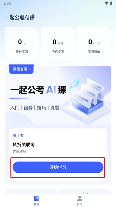 1、首先打开一起公考AI课,用手机号进行登录,登录之后就可以开始学习了;
