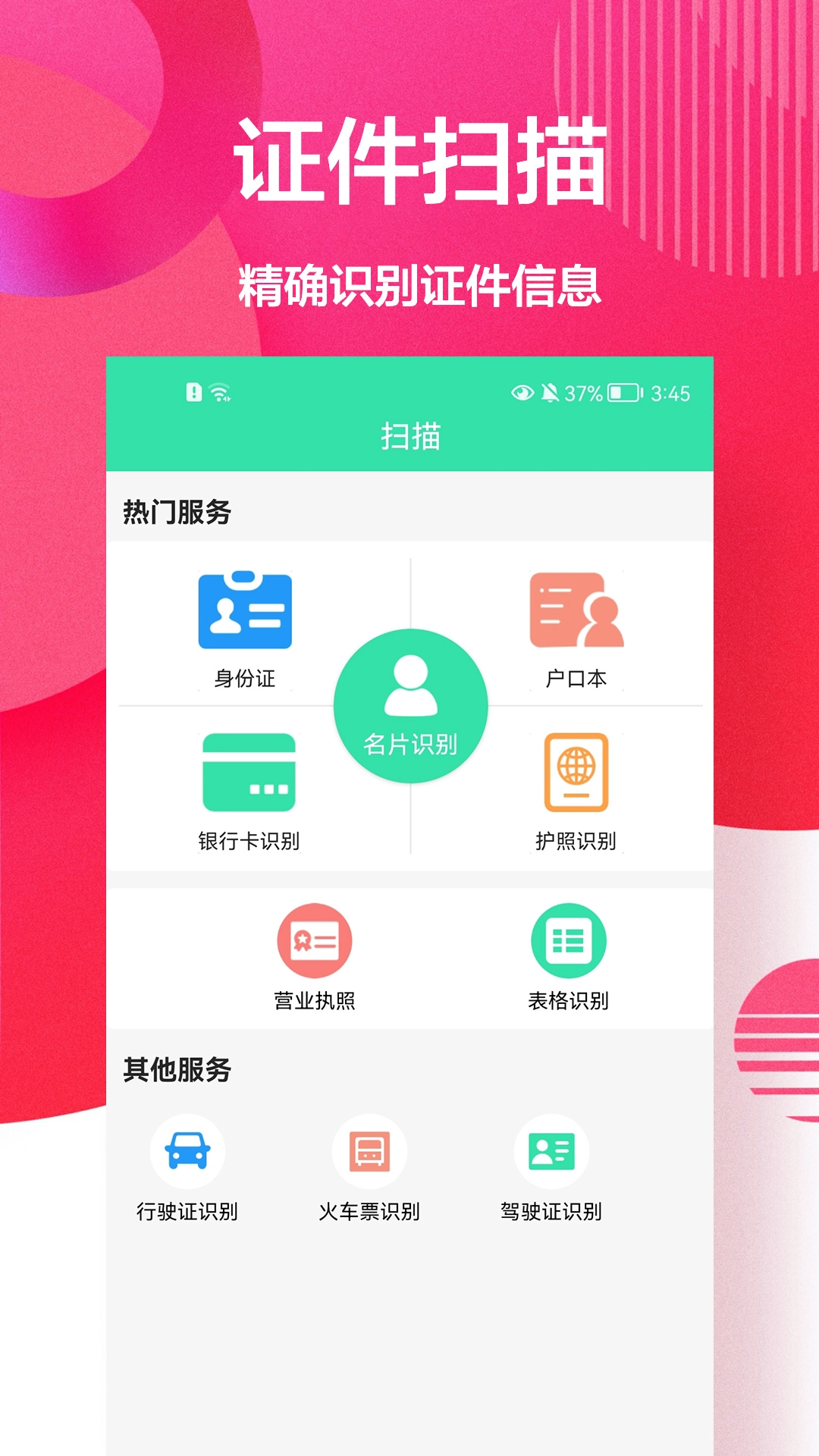 2.支持扫描纸张、名片、图片、合同等各种类型的文档