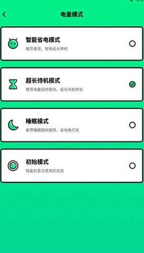 3、点击电量模式,可设置智能省电模式、超强待机模式、睡眠模式等多种模式。