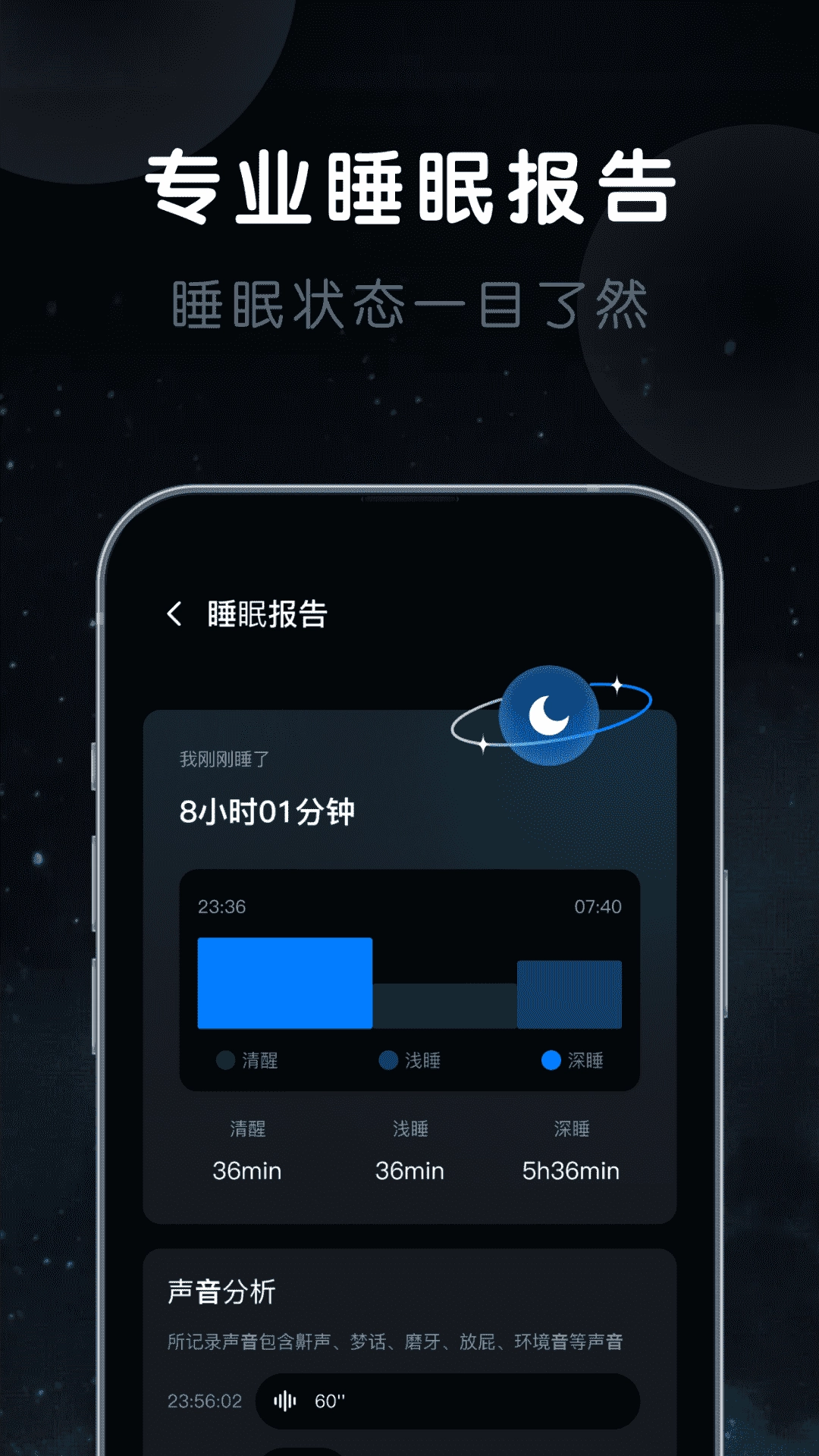 3.能让您清晰直观地掌握自身睡眠状况,还会为大家推荐相应的解决方案
