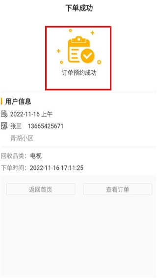 2、填写好回收品类、个人信息和预约时间后,点击提交订单按钮