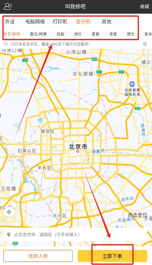 2、平台自带强定位功能,技术员精准定位上门,省去告知地点的繁琐步骤。