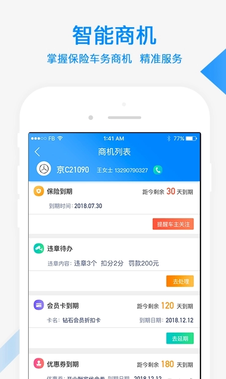 1、汽修集客宝采用智能商机管理系统,自动推送潜在客户信息帮助门店提升接单率。
