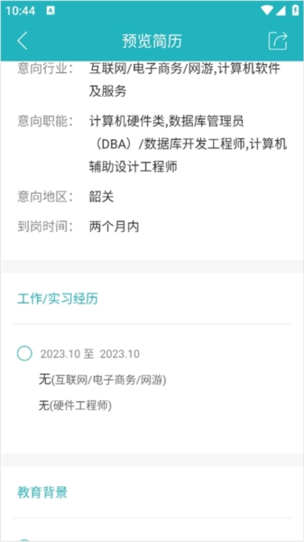 3、完成之后也可以点击右上角的“预览”进行查看自己的简历。