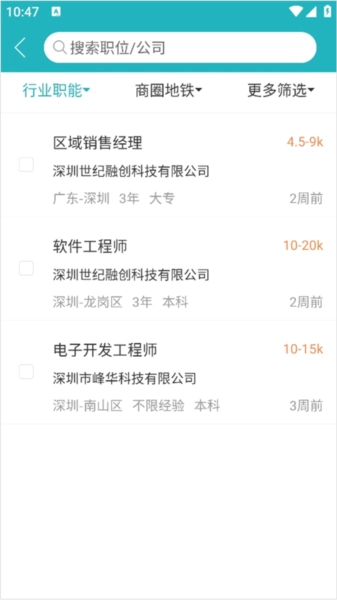 3、把各类需求选择完毕后,这里就会呈现出符合你所有需求的岗位,接着就能够逐个进行投递了。