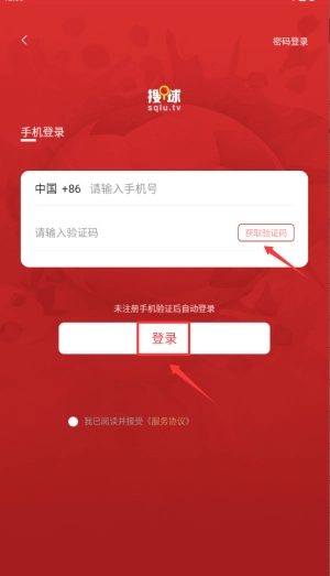 2、选择"登录注册"选项,进入手机号验证界面完成新用户注册流程。