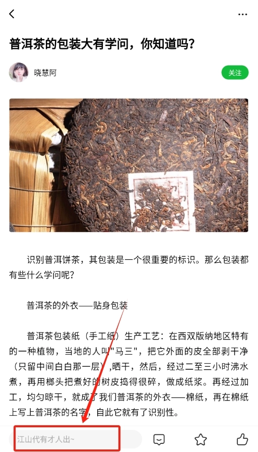 2、阅读完整篇文章后若想表达自己的看法,可点击页面底部醒目的评论框,准备输入内容。