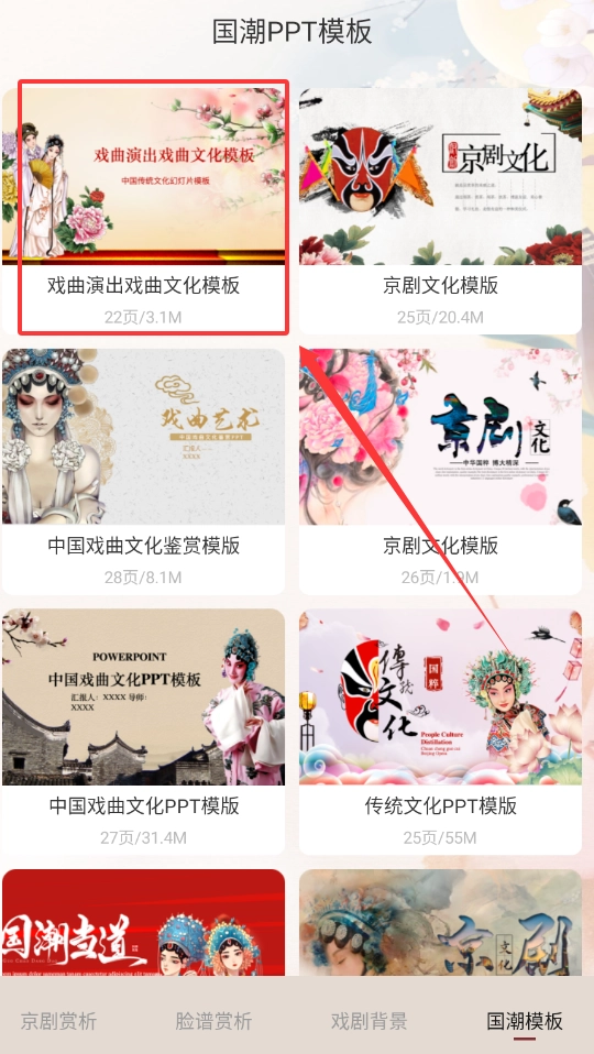 4、素材库提供经过专业设计的戏曲元素模板,包括演示文稿、宣传海报等各类办公素材,可直接编辑使用。