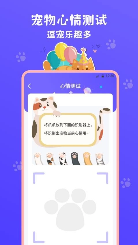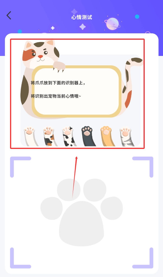 2、进入心情测试环节,若想了解宠物当下的心情,只需把它的爪爪放在上面就行。