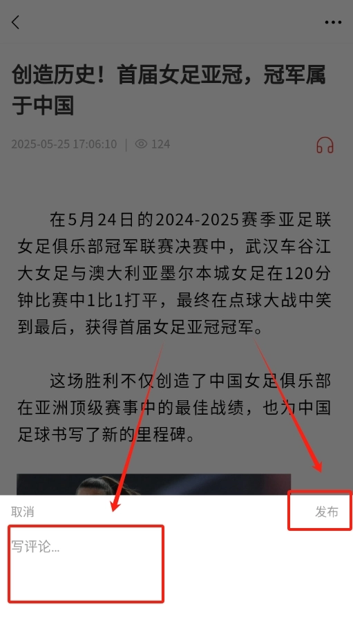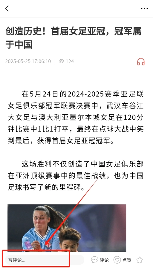 2、阅读完整篇文章后若想发表看法,点击页面底部明显的评论框准备输入。