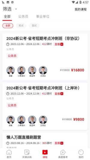 2、平台汇聚海量优质精选课程资源,全面覆盖各类备考知识领域。用户能够依据自身的实际学习需求,快速精准定位到所需内容,从而更高效地提升学习效果。