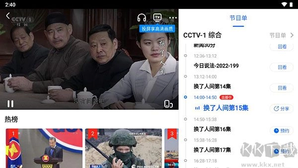 3、点击节目即可进入观看界面,而且节目单里还标注了各节目的播出时间,这样大家看电视就会非常方便。