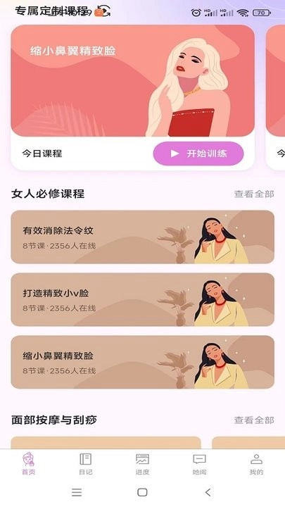 1、不断更新的海量专业面部瑜伽课程资源,涵盖瘦脸紧致、淡化皱纹、提拉轮廓等多种功效的训练方案。