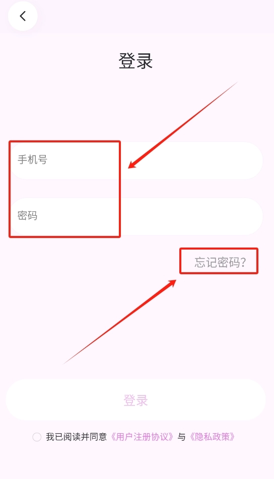 3、要是忘记了密码,在登录页面点击找回密码的选项,就可以重新设置新密码了。