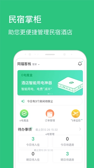民宿掌柜是一款助力民宿酒店管理更便捷的工具软件,需搭配E电魔盒使用,操作方便流畅。它通过电源管理为民宿管理者提供优质辅助,管理者可随时添加民宿信息,还能接收并及时处理更多客户订单。作为一站式综合服务工具,它既提升了民宿管理者的工作效率,也为用户带来了极大便利。