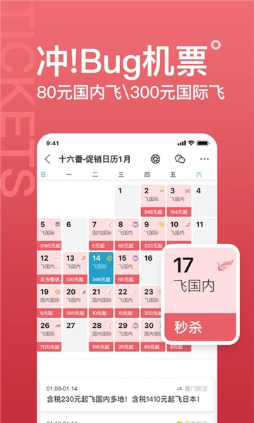 5、各类机票推出超值秒杀价,价格低得超乎想象,帮你轻松节省出行开支。