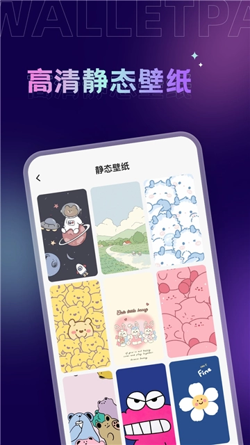 3、高清静态壁纸:包含上新、唯美、卡通、星空等多种风格,提升视觉享受。