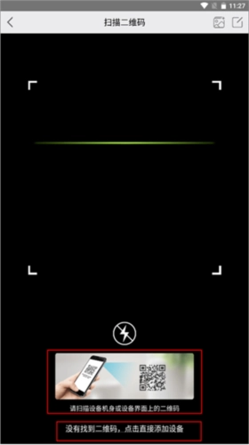 2、将扫描框对着设备机身或设备界面上的二维码,如果没有找到二维码,就可以点击下方的“直接添加设备”文字按钮。