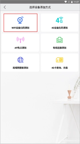 3、这里有很多种添加设备的方式,如WiFi设备扫码添加、4G设备扫码添加、AP热点添加、有线连接添加等