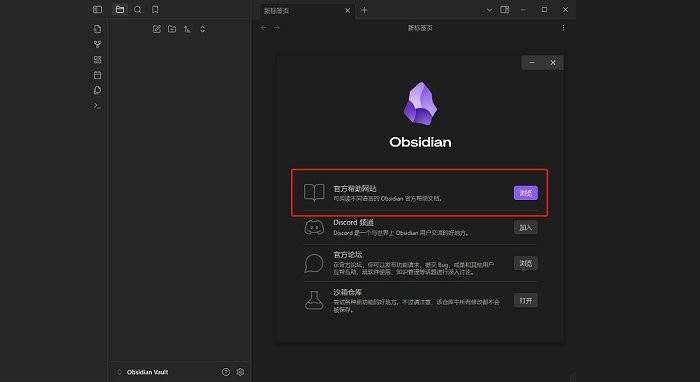 通过“快速启动”按钮创建新的保管库现在会打开welcome.md。