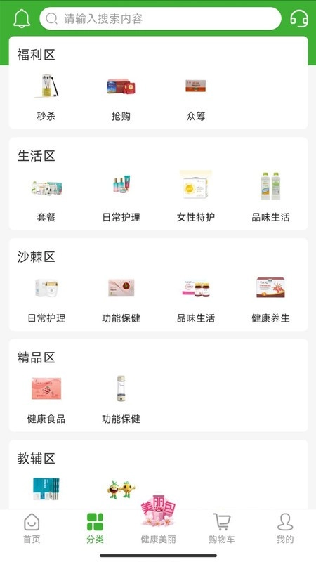 生活区,各种绿色健康的生活必需品高质低价,去掉中间环节,直接从工厂到消费者手里,让直销回归本质,致力于让消费者终身消费省钱。