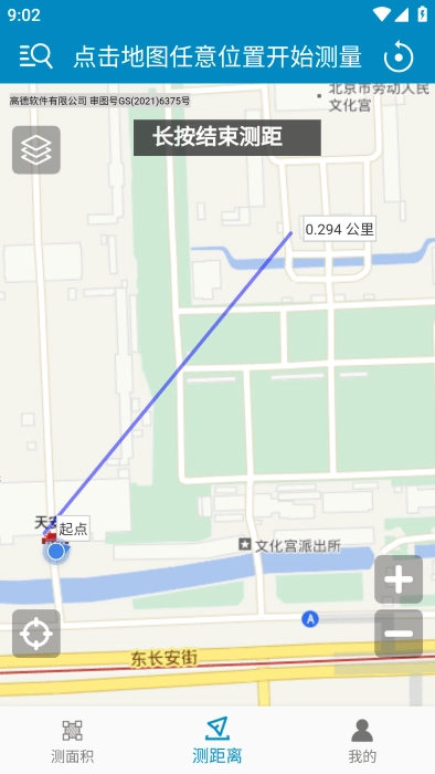 4.最后,长按地图上一个测量点的位置结束测量。