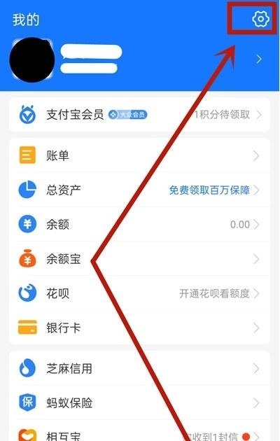 1、打开支付宝应用,进入后点击底部导航栏的【我的】选项,接着点击页面右上角的【设置】图标。