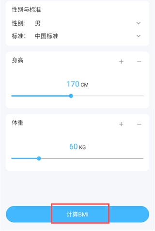 3、填写性别、身高、体重等信息后,点击【计算BMI】按钮