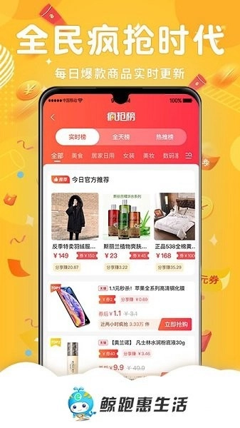 鲸跑惠生活是一款给用户带来便捷和优惠的,通过对接各大平台,给消费者提供更多更超值的商品。