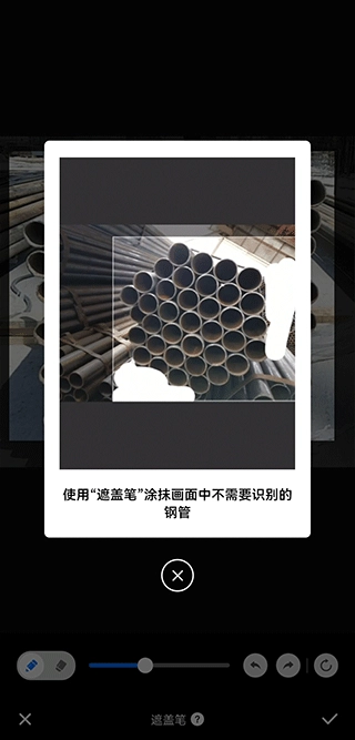 5、拍照时使用遮盖笔,可以将不需要识别的钢管涂抹掉