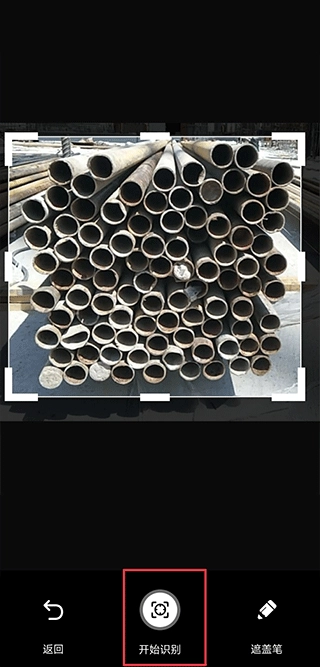2、对着钢管拍照后,点击开始识别