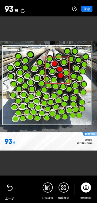 4、要是出现漏数的情况,用户还能在图片里点击那些漏数的钢管,手动点击的钢管会显示为红色,并且点击之后下方的数字会自动增加。